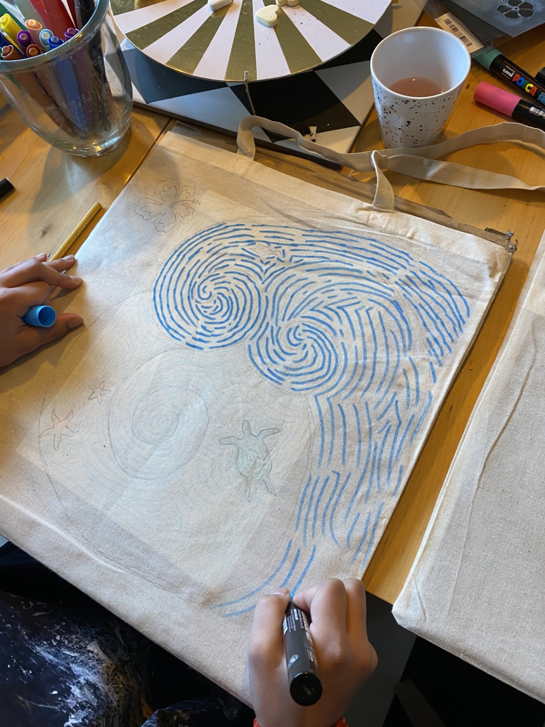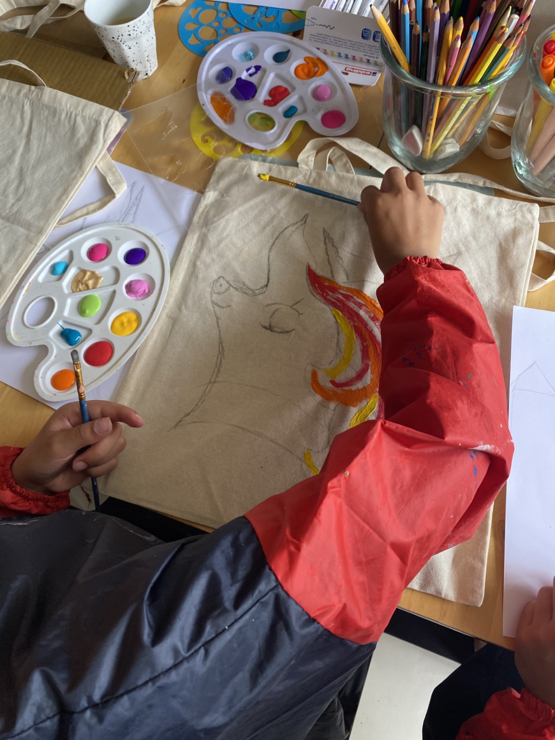 Met speciale verf en stiften maak je de tas kleurrijk en helemaal eigen!