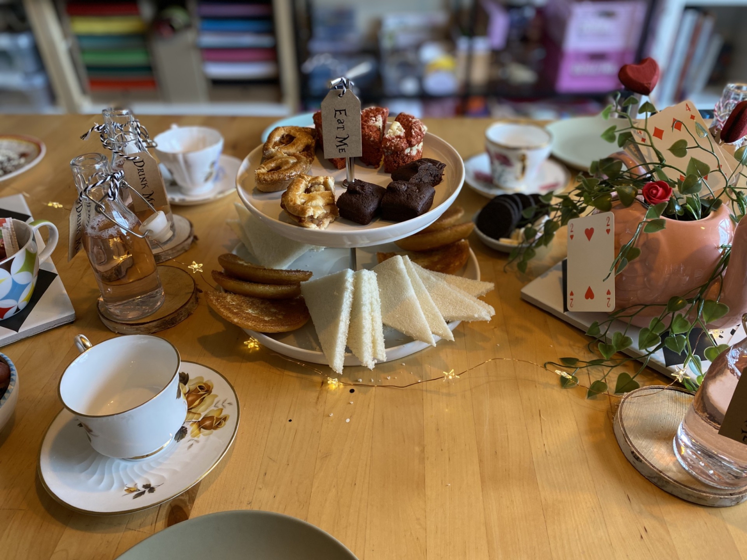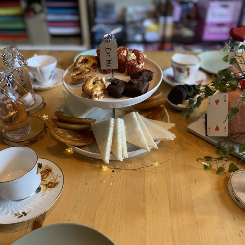 Omdat bij Alice in Wonderland de Tea-Party een grote rol speelt, kan je bij dit feestje een speciale high tea erbij bestellen. Alles zal in de stijl van Alice zijn. Ik reken hier een speciale prijs voor (op te vragen bij interesse).